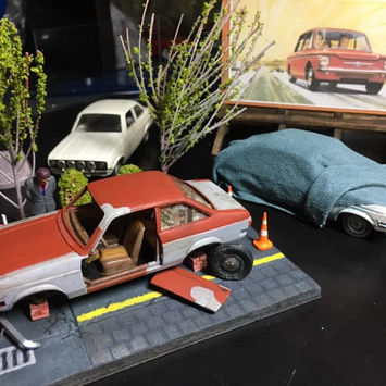 It now sits proudly, amongst other victims, in a Breaker’s Yard diorama as a somewhat sad and neglected parts donor vehicle.